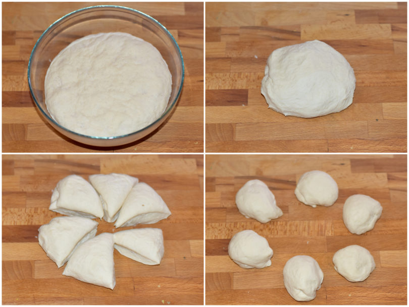 Riprendete l'impasto, sgonfiatelo con le mani e dividetelo in 6 palline uguali.