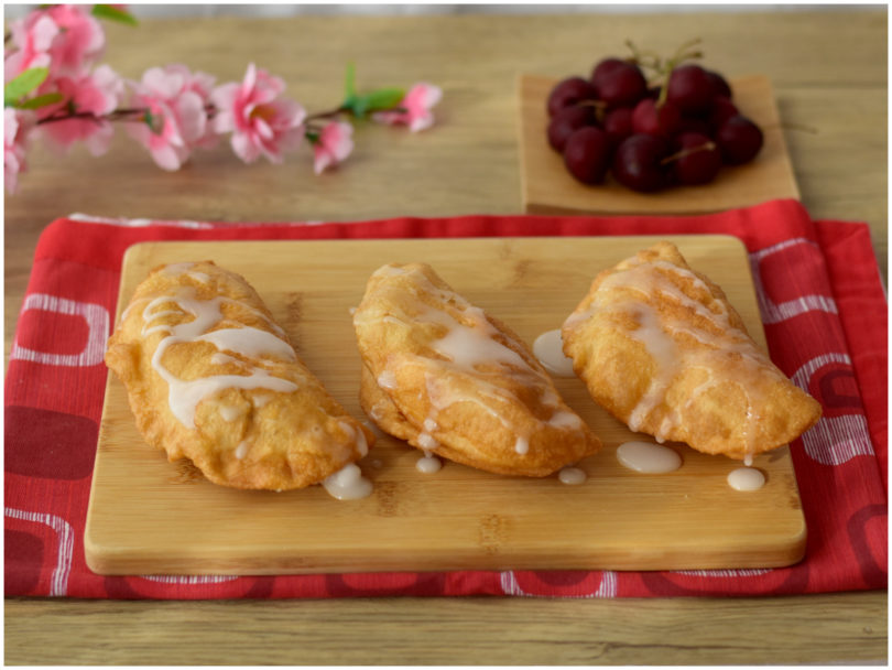 Ispirati a una ricetta americana di hand pies, questi panzerottini dolci possono anche essere cotti al forno, ma è nella versione fritta che rivelano tutta la loro golosità. Un impasto semplice, un cuore di ciliegie fresche e una glassa al limone che aggiunge freschezza e contrasto: un peccato di gola da concedersi senza rimpianti.