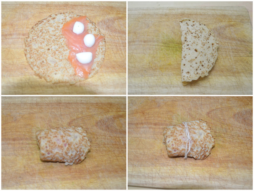 Come fare i Fagottini di crepes con salmone e mozzarella
