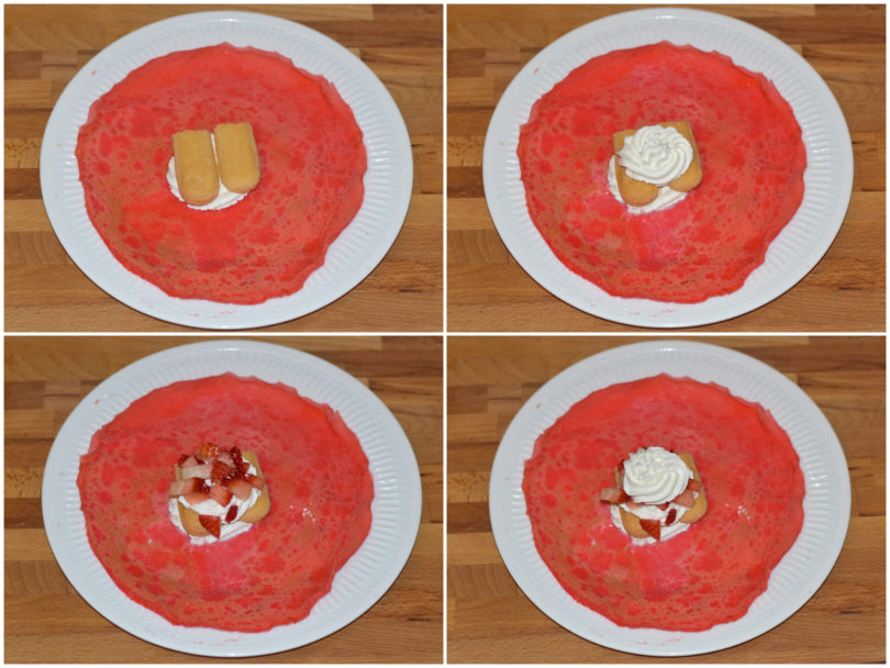 Aggiungete un secondo ciuffetto di crema, poi le fragole e infine concludete con un terzo ciuffetto.