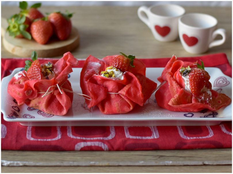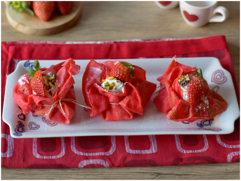 Un dessert elegante, scenografico e sorprendentemente facile da preparare: questi fagottini di crêpes rossi sono perfetti per stupire a San Valentino (e non solo)!