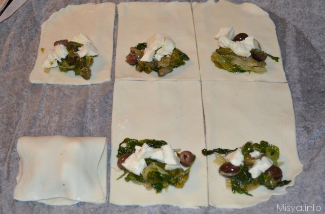 Ho comprato la pasta sfoglia, ho raccolto la scarola dal mio bellissimo orticello 🙂 e ho usato le olive fatte in casa quindi ho cucinato questi fagottini, sono usciti buonissimi. Freddi erano ancora più buoni!!