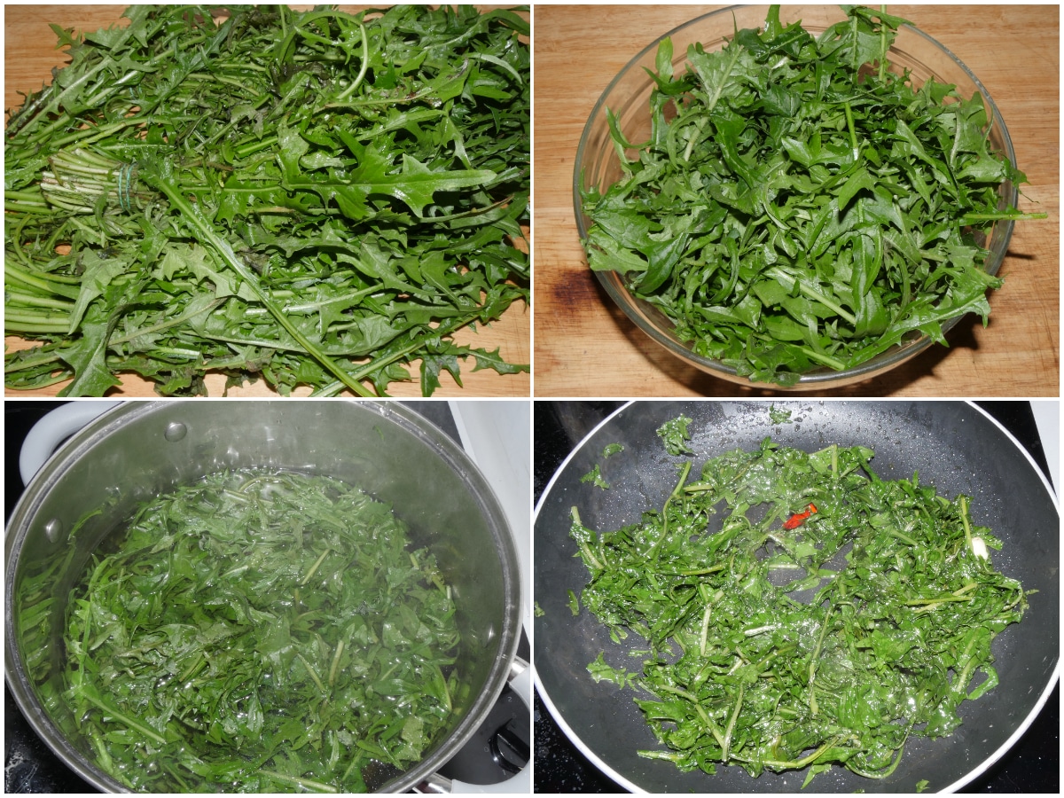 Nel frattempo lavate bene le cicorie sotto acqua corrente, eliminate le foglie più rovinate e i gambi duri, quindi sbollentatele per pochi minuti in acqua bollente leggermente salata, quindi scolatele e ripassatele in padella con aglio, olio e peperoncino.