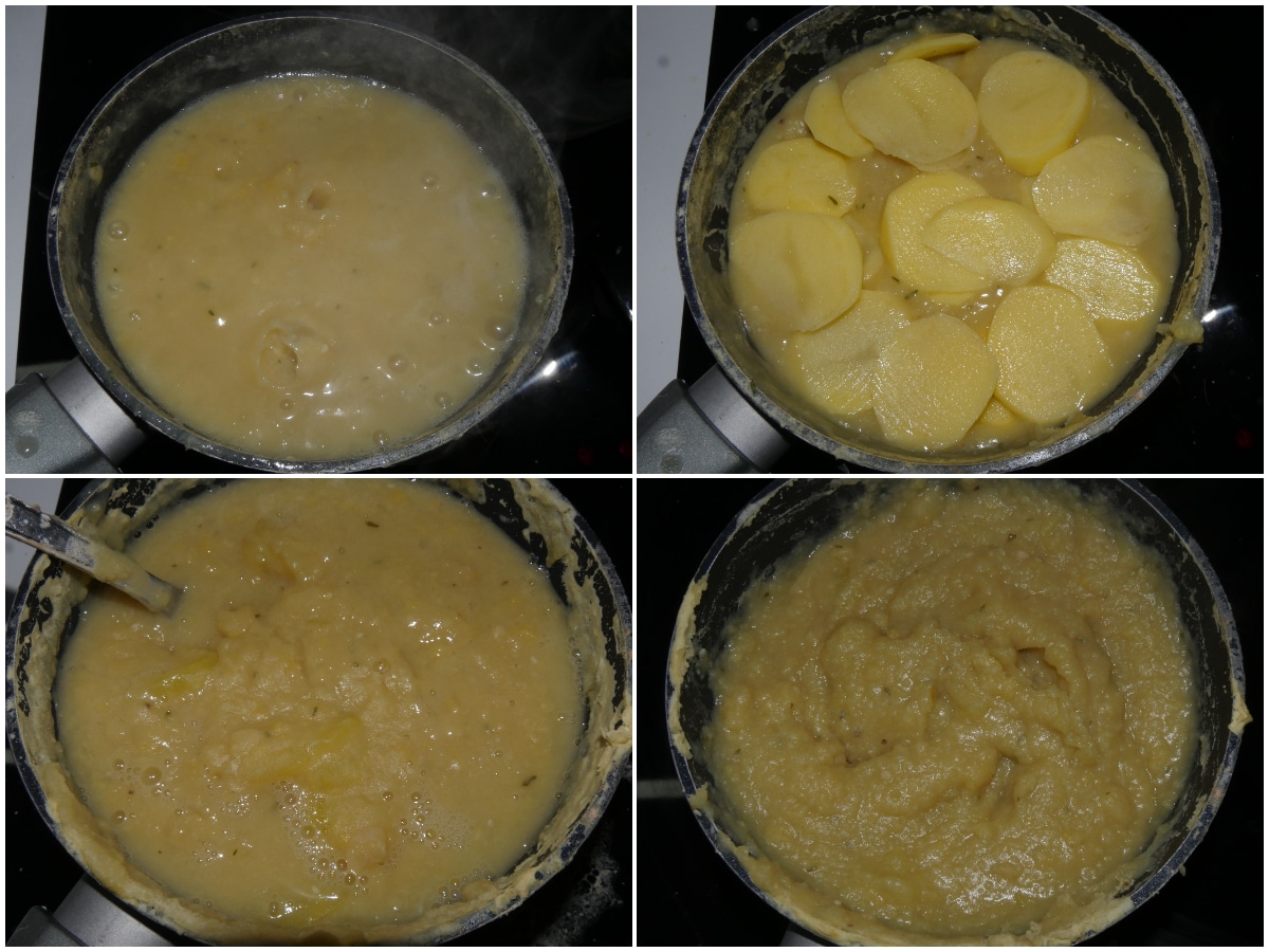 A metà cottura aggiungete le patate (pelate, lavate e tagliate a fette molto sottili o a dadini piccolini).