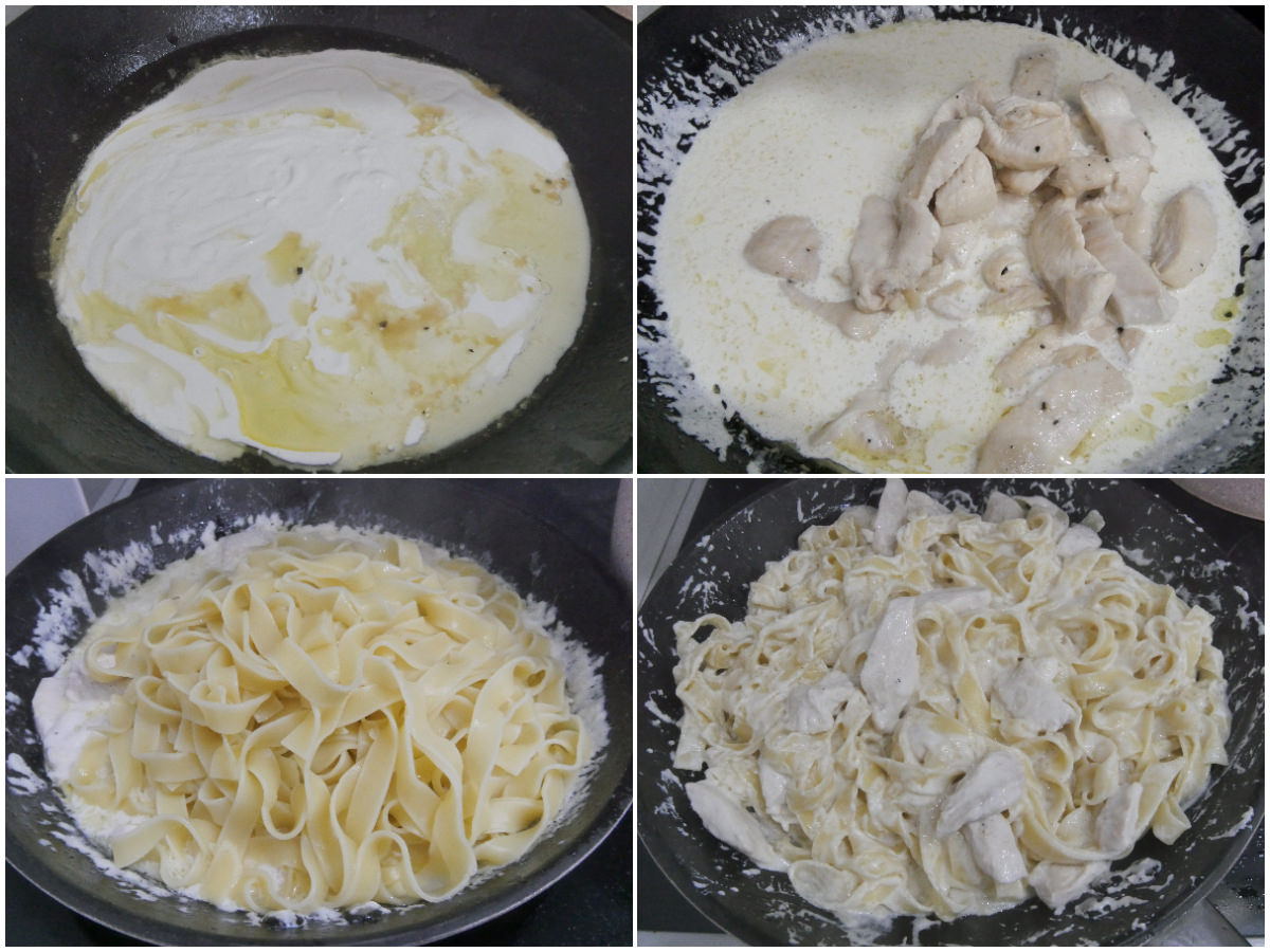 La ricetta venne poi riportata in auge a inizio '900 da un ristoratore, sempre romano, Alfredo Di Lello, da cui il nome. Tra gli anni '20 e '30 del '900, le fettuccine Alfredo si sono poi diffuse tantissimo nei ristoranti italoamericani, mentre qui da noi sono state dimenticate. La versione che si è diffusa, però, prevedeva l'utilizzo della panna al posto del burro: non solo, ma molti ristoranti la propongono appunto con l'aggiunta di pollo al condimento base. Eccomi qui, dunque, dopo questo lungo preambolo, a proporvi la mia ricetta delle fettuccine Alfredo con pollo ;)
