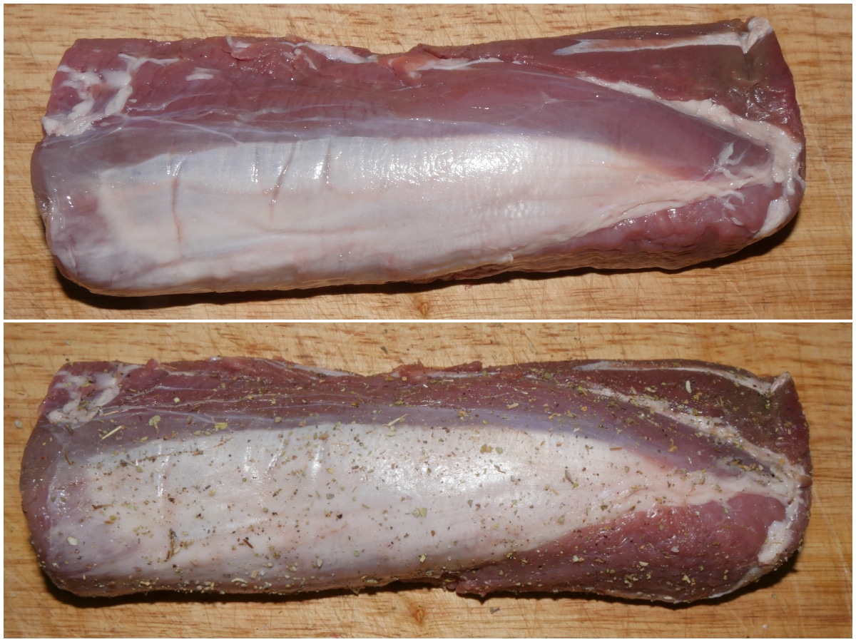 Condite e massaggiate il filetto con gli aromi tritati (sale, pepe, rosmarino, timo e salvia... oppure aromi misti per carni), quindi lasciatleo insaporire per almeno 2-3 ore.