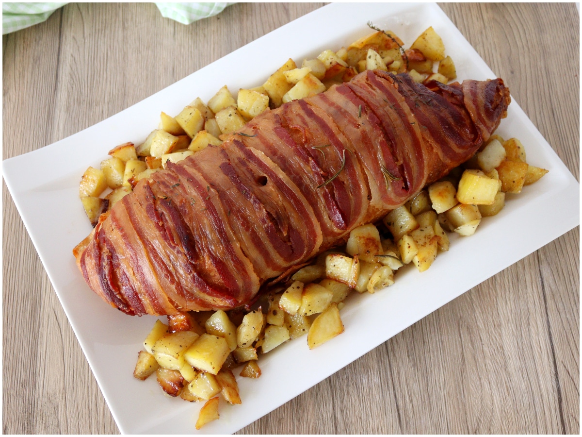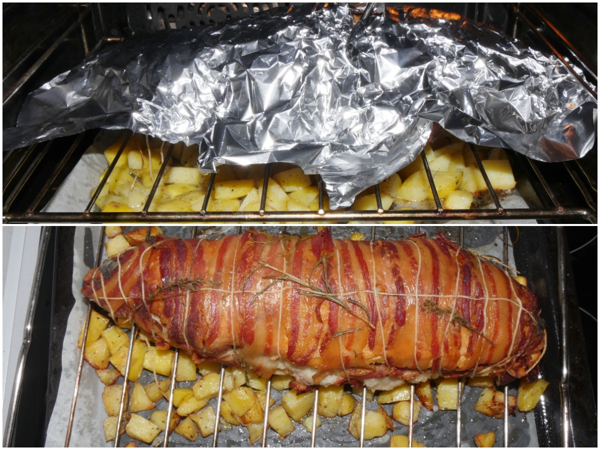 eliminate l'alluminio e cuocete ancora per 1 ora, verificare che la pancetta sia bella croccante.