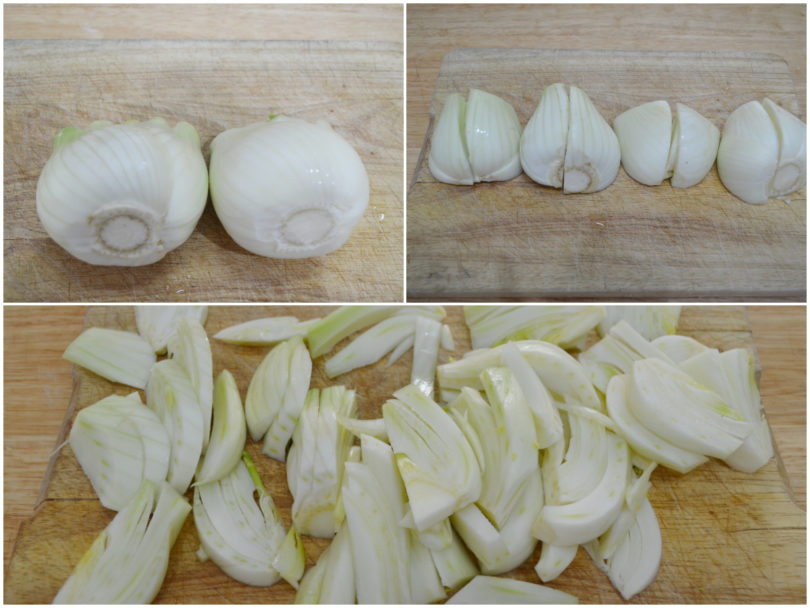 Innanzitutto pulite i finocchi eliminando gambi e le foglie esterne più dure e fibrose.