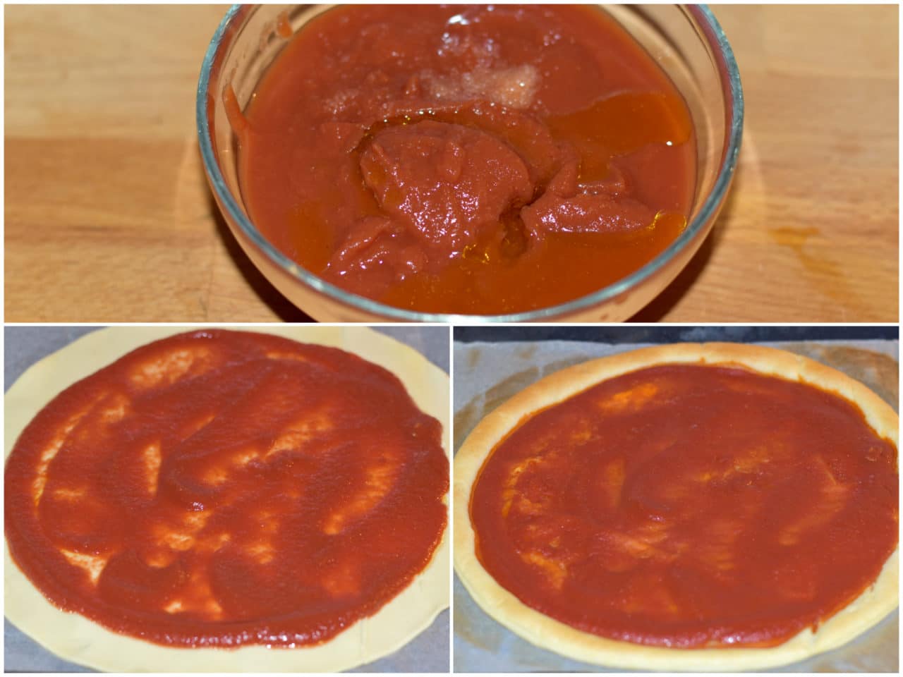 Spalmate la passata sulla sfoglia, lasciando 2 cm liberi lungo i bordi.