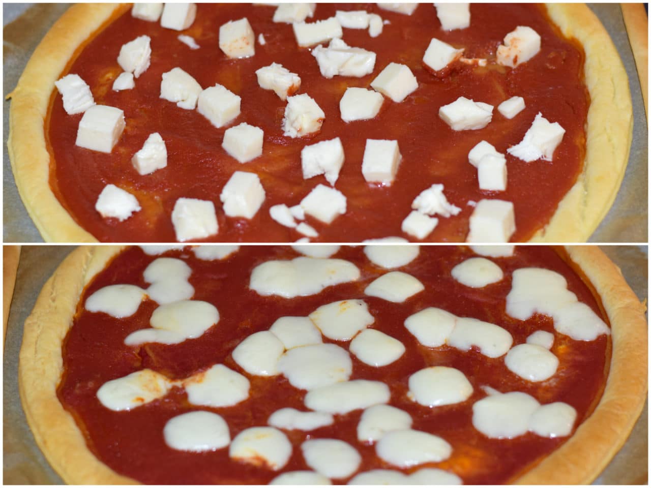 Sfornate, aggiungete il fior di latte a cubetti sulla superficie e cuocete per altri 5-10 minuti.