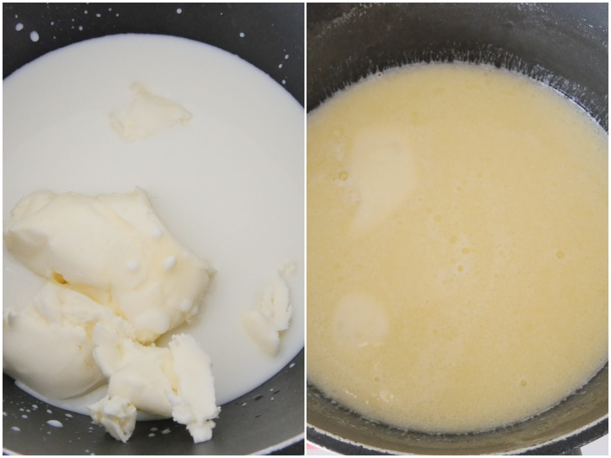 Innanzitutto sciogliete il burro nel latte caldo e lasciate intiepidire.