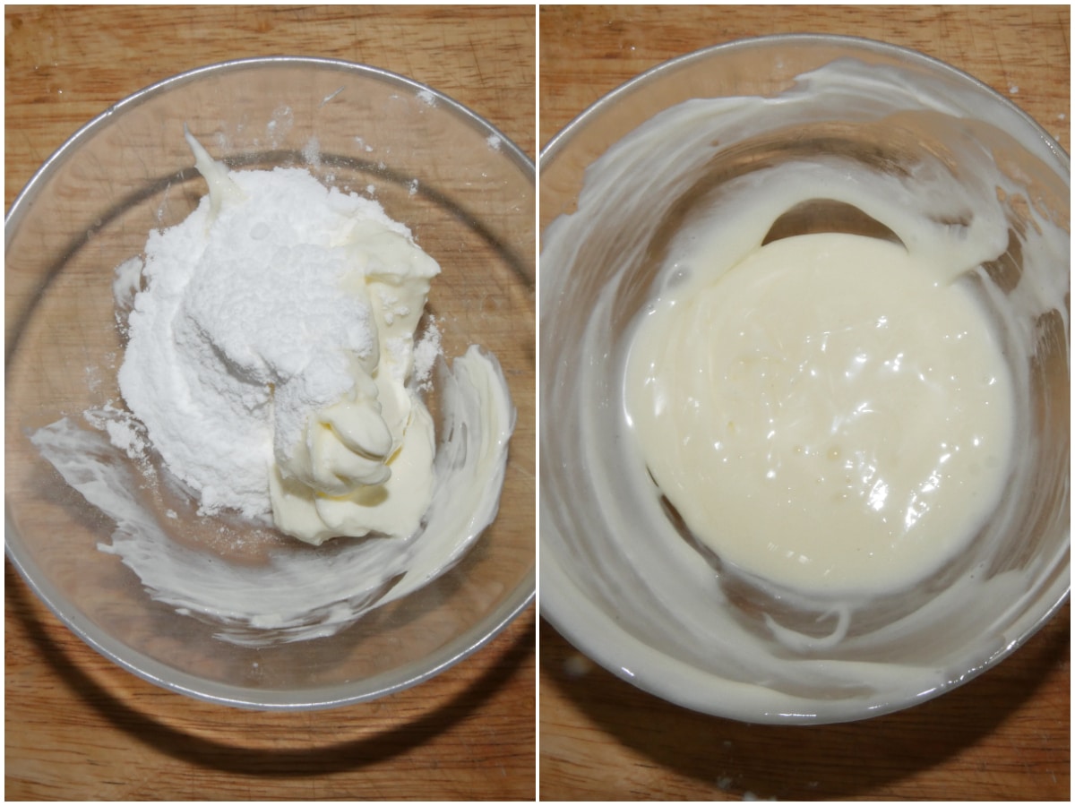 Innanzitutto preparate il ripieno: per quello dolce, sbattete il formaggio con lo zucchero; per quello salato, sbattete insieme Philadelphia e grana, aggiungendo un pizzico di sale e pepe a piacere.