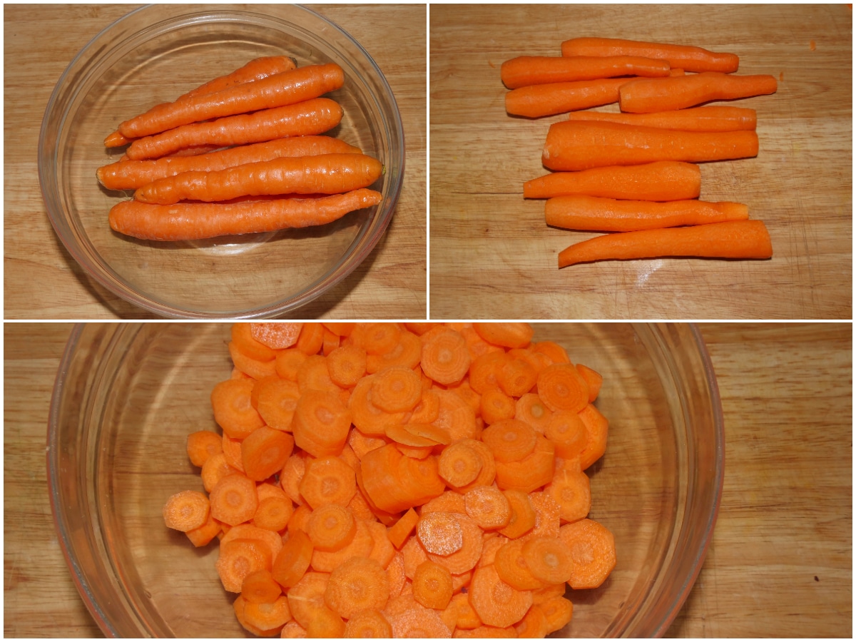 Lavate le carote, mondatele e tagliatele a fettine sottili.