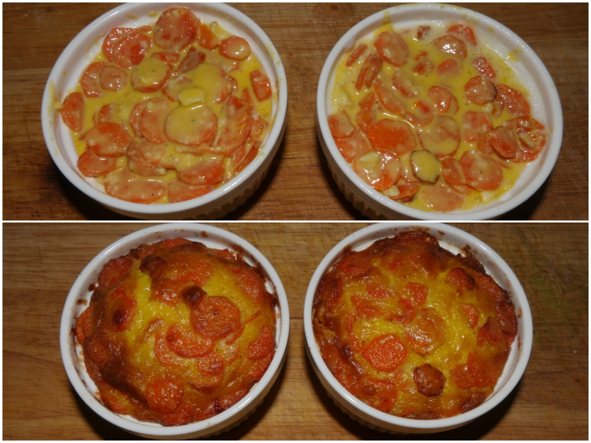 Disponete il composto di uova e carote nelle cocottine adatte alla cottura in forno cuocete per circa 20 minuti (o fino a doratura) a 220°C, in forno ventilato già caldo.