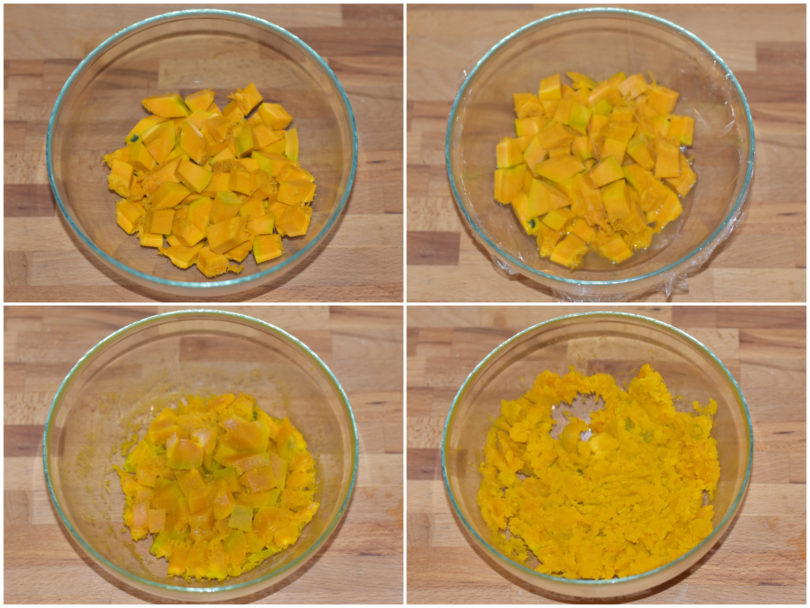 Innanzitutto mondate la zucca e tagliatela a tocchetti.