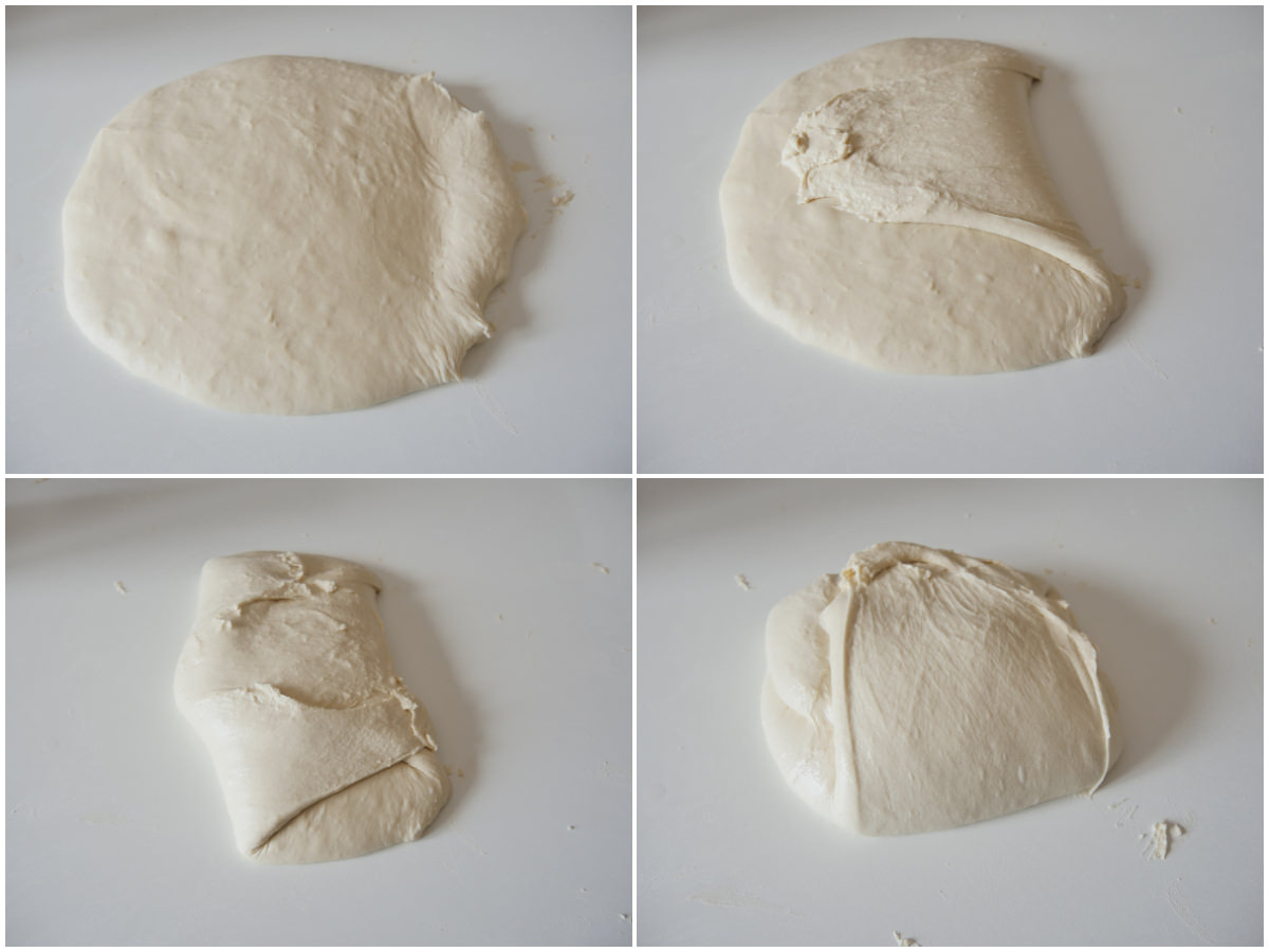 Eseguite le prime pieghe a 3, fate riposare per 15 minuti, quindi ripetete le pieghe altre 3 volte (4 volte totali), sempre con 15 minuti di riposo tra una volta e l'altra.