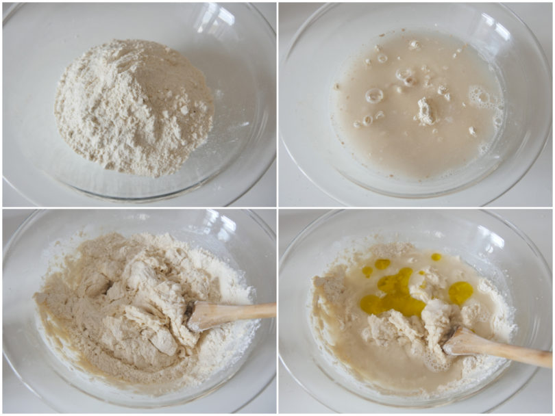 Iniziate ad impastare, quindi aggiungete a più riprese anche l'acqua restante, e infine sale e olio.