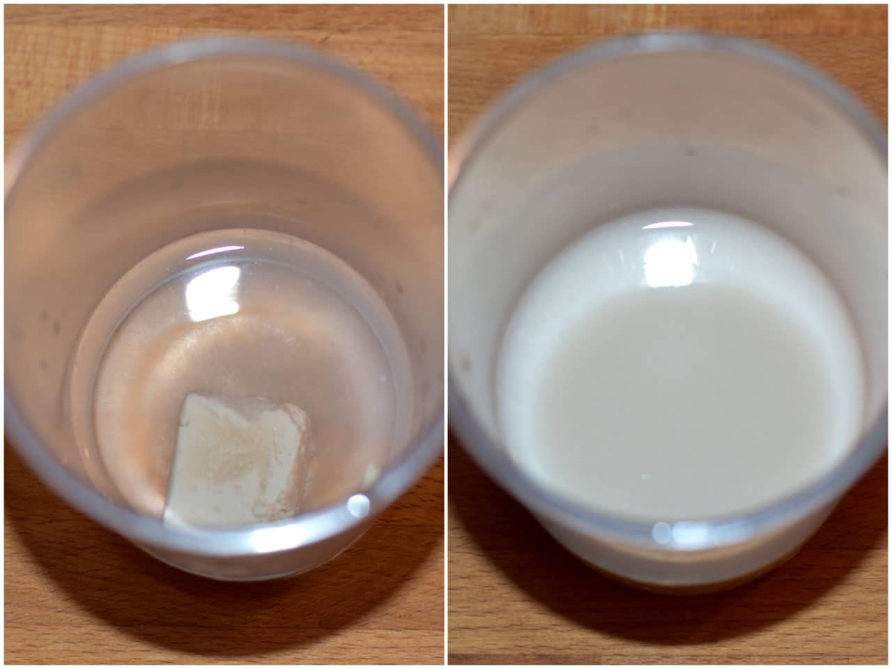 Sciogliete il lievito e lo zucchero nell'acqua appena intiepidita.