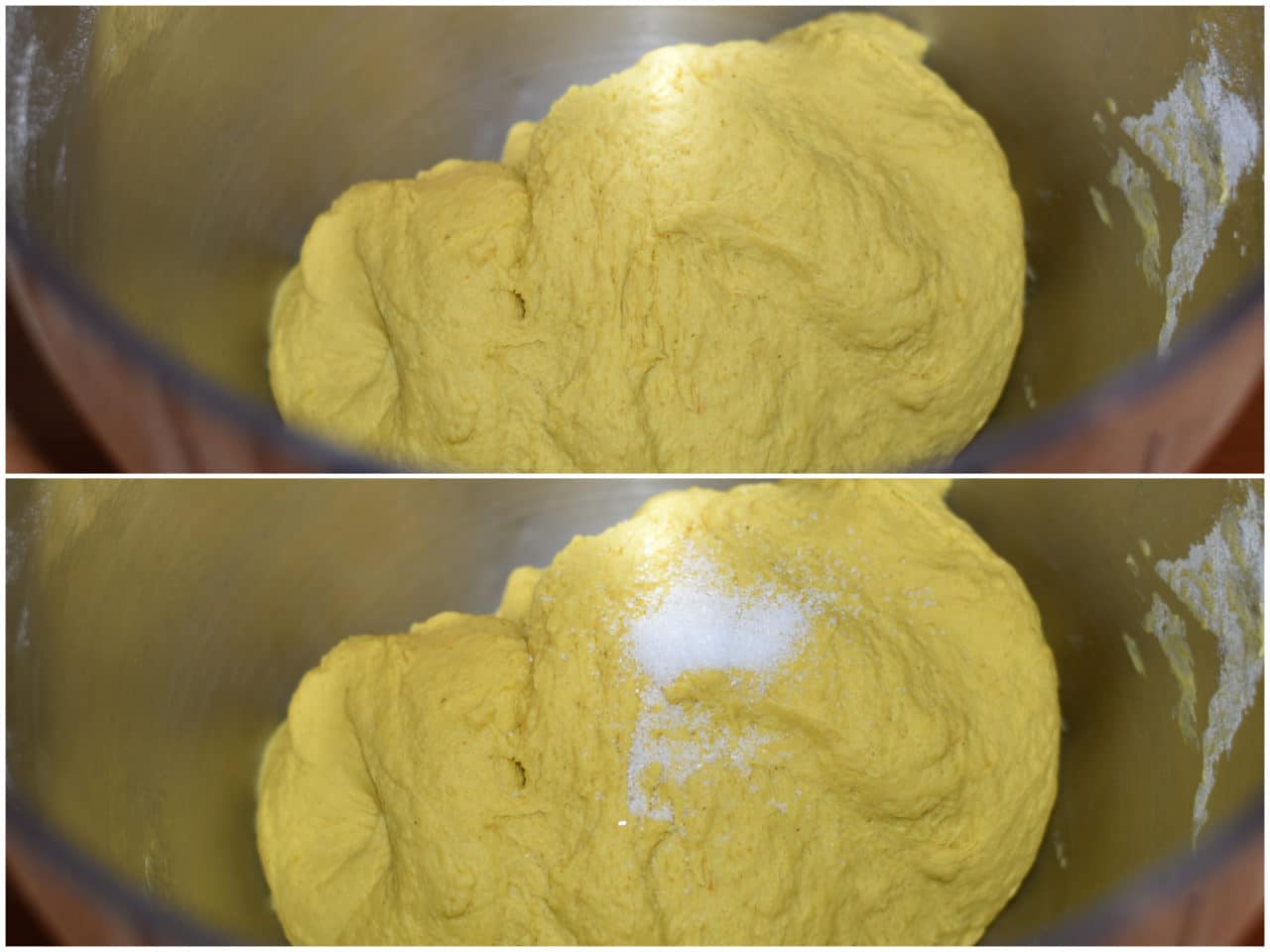 Incorporate il mix di lievito alla farina e infine aggiungete anche il sale, continuando a impastare fino ad ottenere un impasto omogeneo ed elastico.