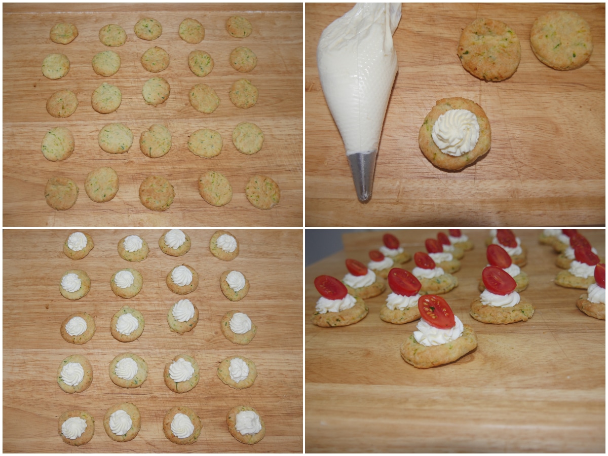 Una volta completamente fredde, mettete il mascarpone in una sac-à poche con beccuccio a stella e farcite con formaggio e pomodorini.