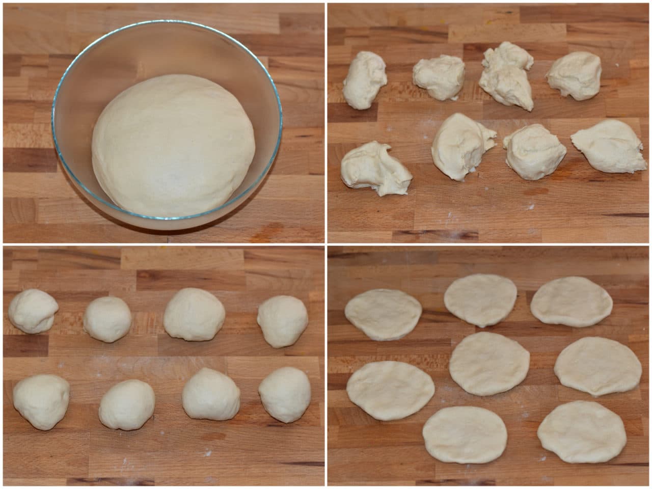 Quando sarà raddoppiato dividete l'impasto in 8 palline uguali e schiacciatele con le mani per formare le focaccine.