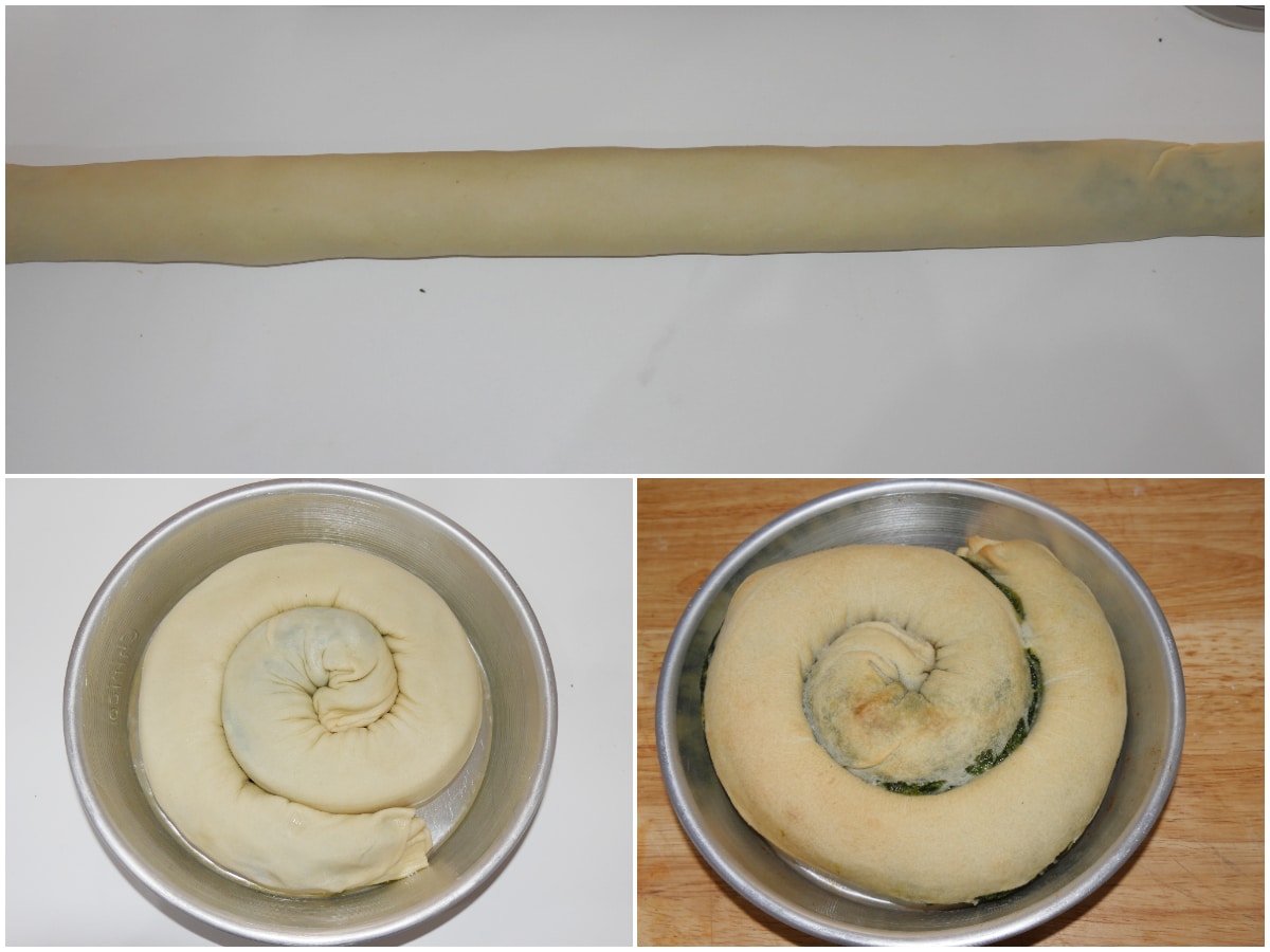 Arrotolate creando una chiocciola, mettetelo in uno stampo in modo che mantenga la forma e cuocete per 25-30 minuti o fino a doratura (dipende dallo spessore della sfoglia) a 180°C, in forno ventilato già caldo.