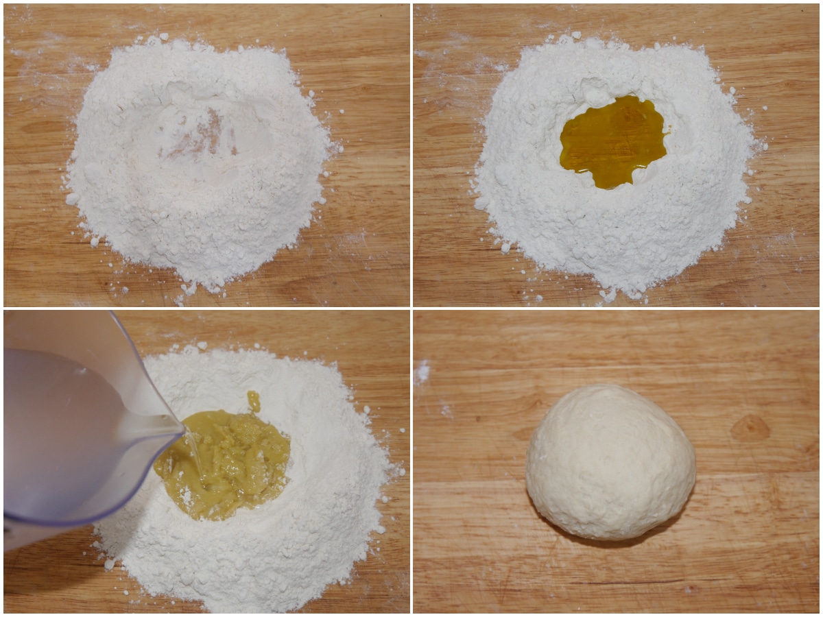 Innanzitutto preparate la pasta matta: unite tutti gli ingredienti (farina, acqua, olio e un pizzico di sale) e mescolate rapidamente fino ad ottenere un panetto omogeneo, avvolgetelo con pellicola trasparente e lasciatelo riposare a temperatura ambiente per almeno 1-2 ore.