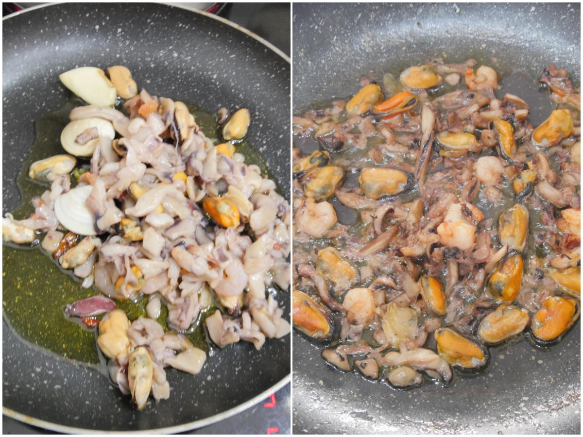 Innanzitutto, se non l'avete già fatto, pulite cozze, vongole e calamari.