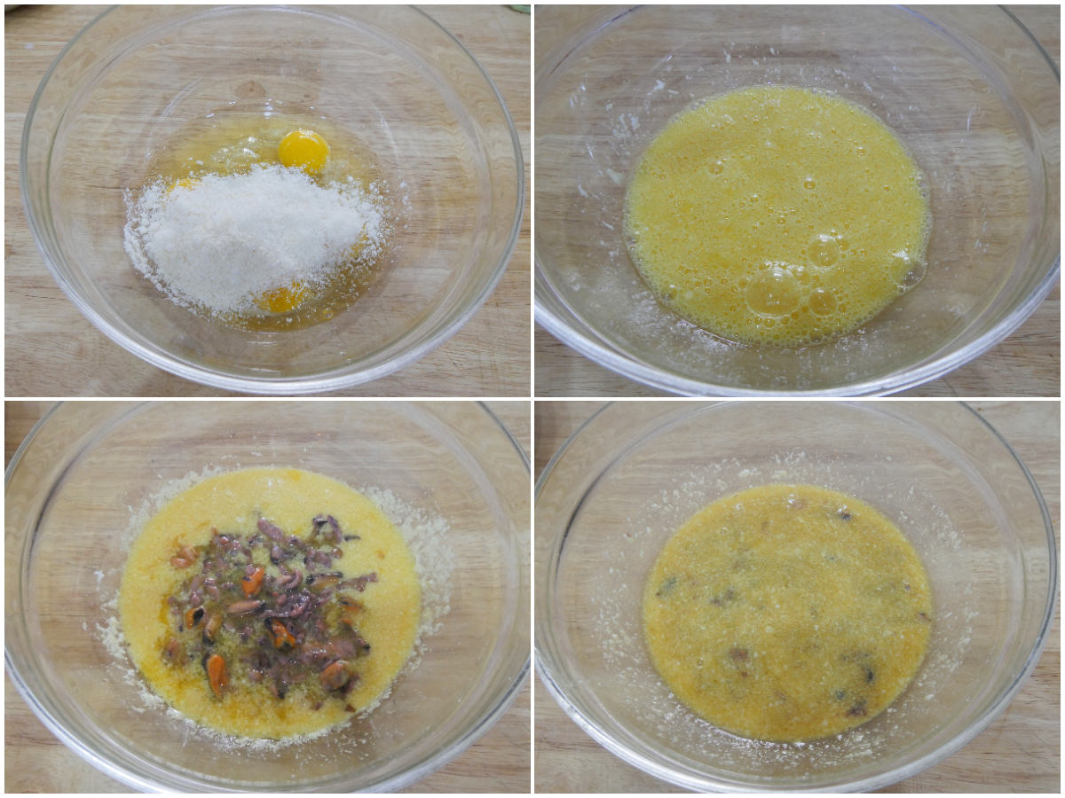 A fine cottura, sbattete le uova con il pecorino e poco sale, quindi incorporate anche i frutti di mare.