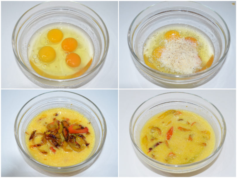 In una ciotola, sbattete le uova con sale, pepe e parmigiano.