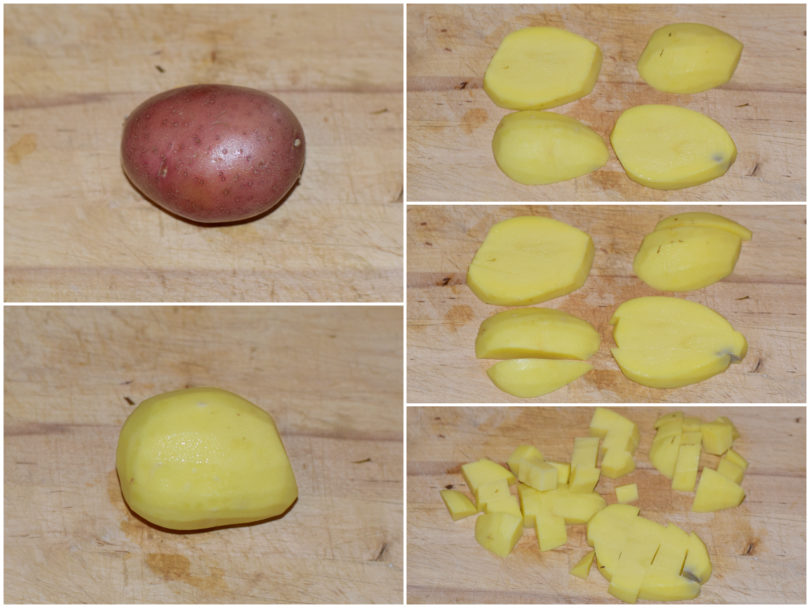 Mondate anche le patate e tagliatele a cubettini.