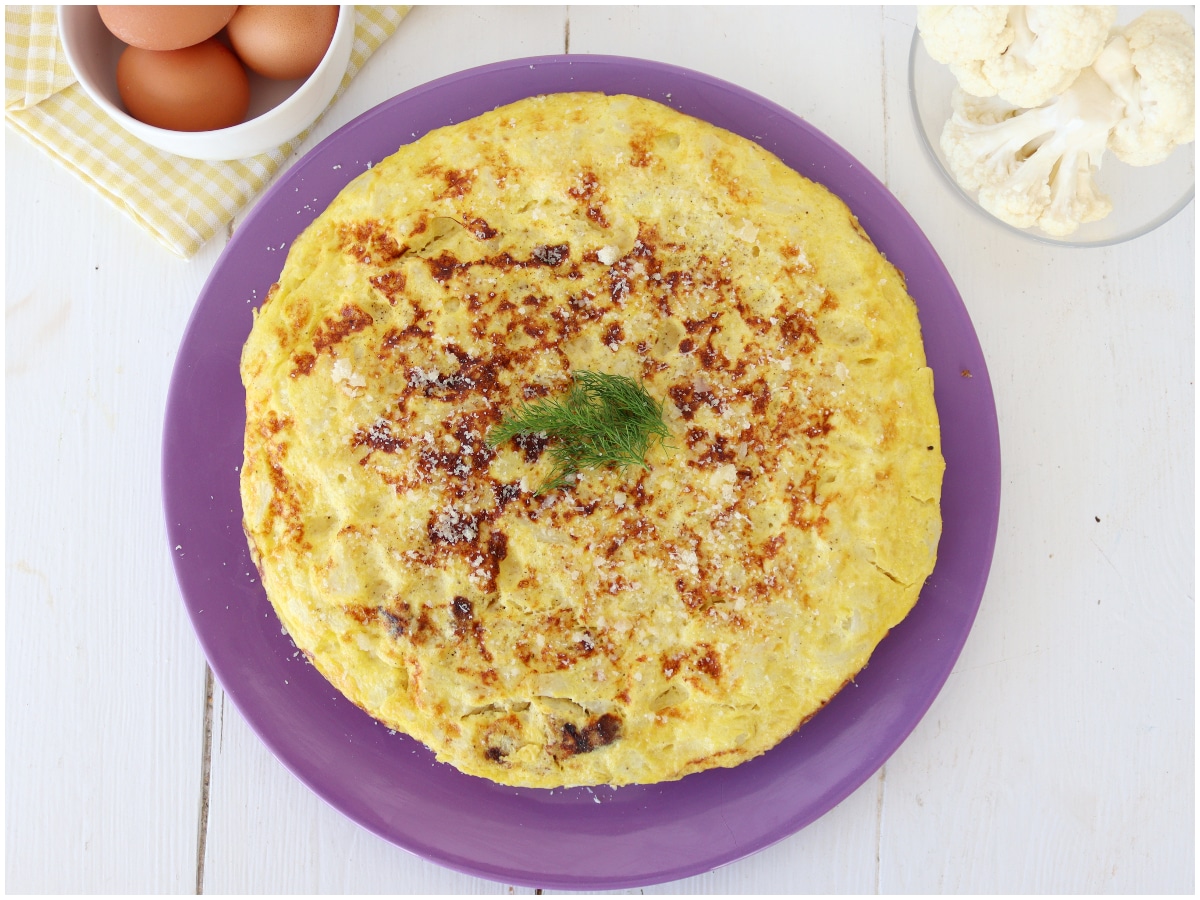 La frittata di cavolfiore è pronta: potete servirla calda o tiepida.