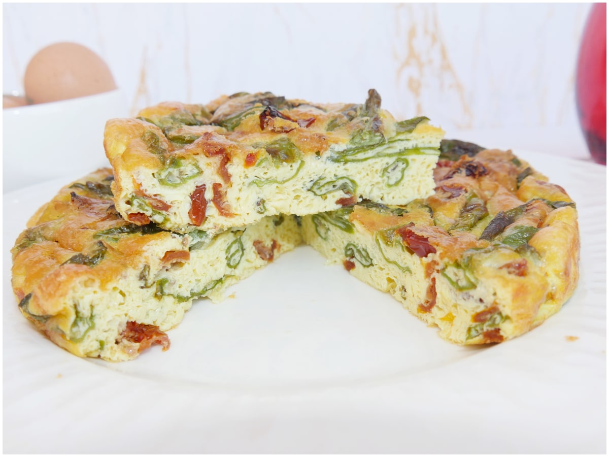 Versate il composto nello stampo rivestito di carta forno e cuocete per circa 20 minuti a 180°C, in forno ventilato già caldo (in alternativa potete cuocere normalmente in padella antiaderente con un po' di olio, girando la frittata a metà cottura).