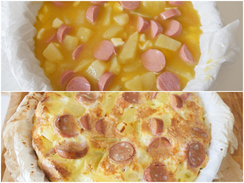 La frittata wurstel e patate è pronta, servitela calda o tiepida.