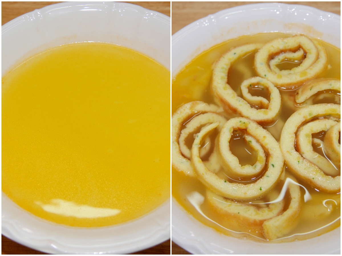 La Frittatensuppe è pronta: decorate con erba cipollina o prezzemolo e servite.