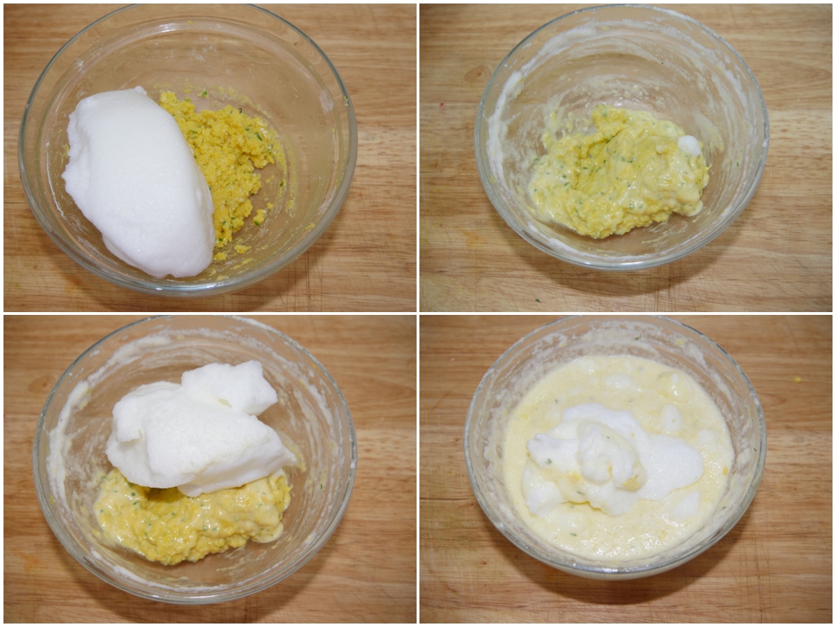 Unite gli albumi al secondo composto in 2-3 volte, in modo da incorporarli delicatamente e senza farli smontare.