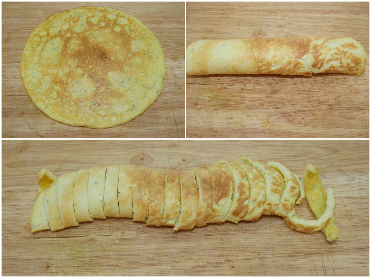 Una volta pronta, arrotolate la frittata e tagliatela a rondelle.