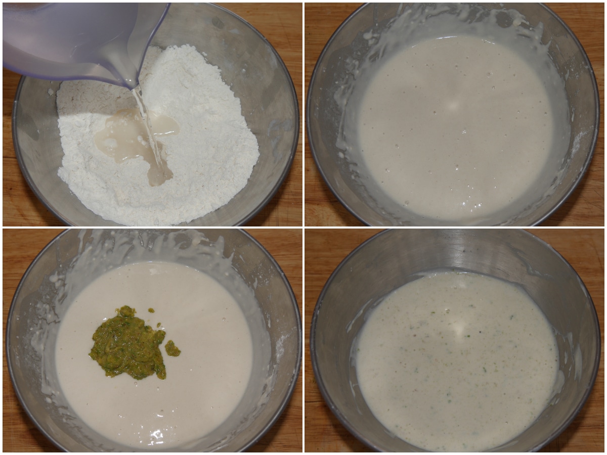 Quando la pasta sarà pronta, preparate la pastella: unite acqua e farina in una ciotola e amalgamate, quindi incorporate anche la crema di zucchine.