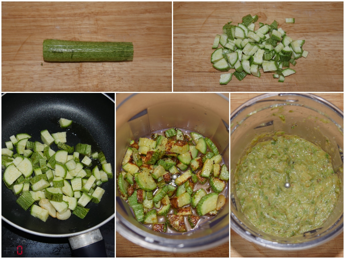 Nel frattempo prendete le zucchine restanti (i 100 gr), lavatele, mondatele, tagliatele a tocchetti e cuocetele in padella con aglio, olio, sale e un pochino di acqua.