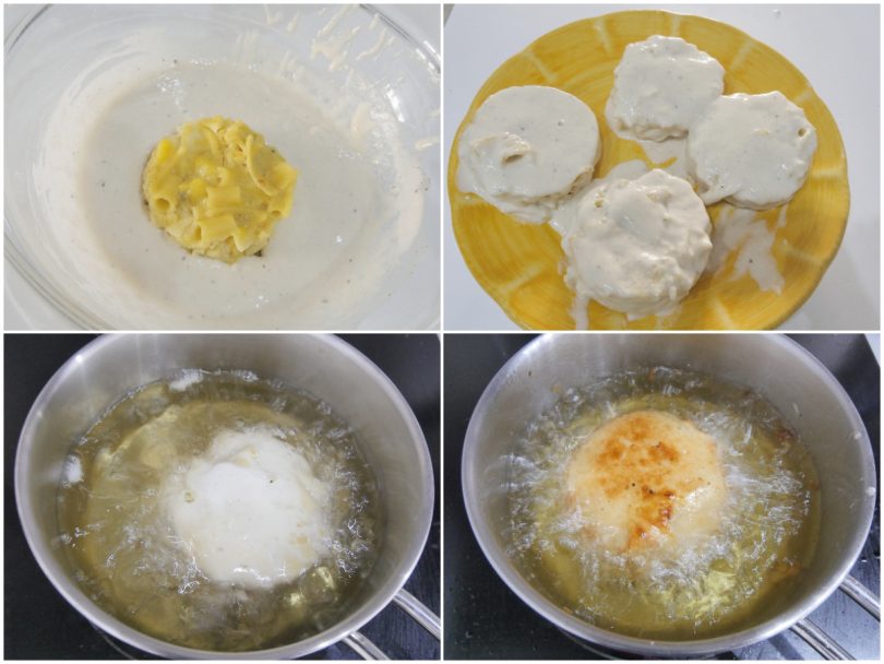 A questo punto passate le frittatine nella pastella, una per volta, ricoprendole interamente, quindi friggetele in olio di semi ben caldo, facendole dorare in maniera uniforme.