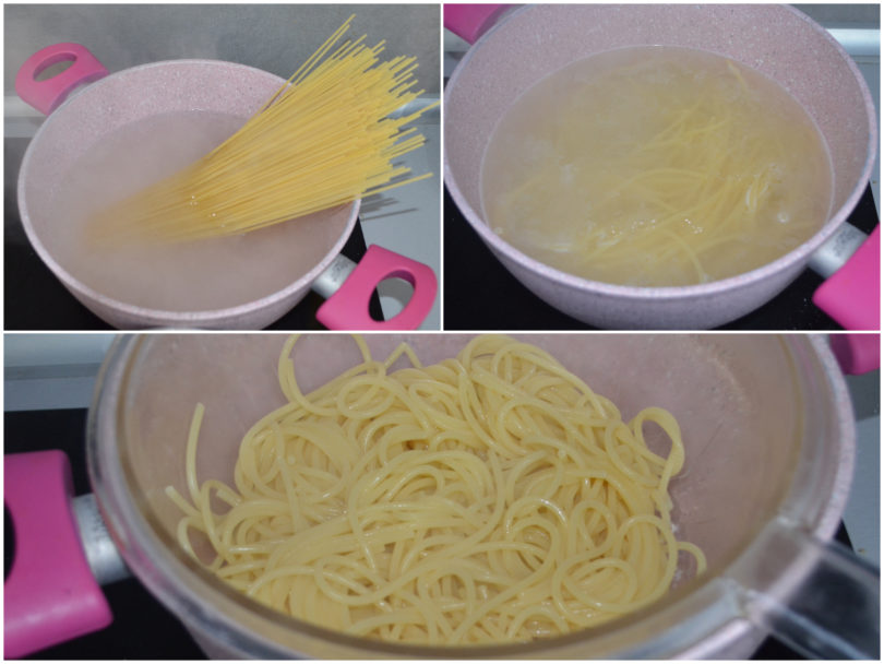 Nel frattempo, cuocete gli spaghetti e scolateli ben al dente.