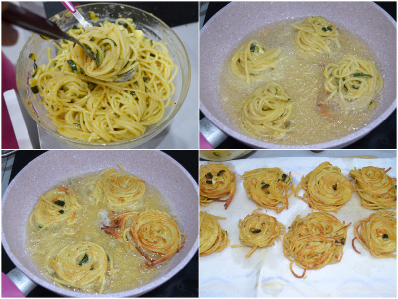 Cuocete da entrambi i lati a fiamma media fino a doratura, quindi scolate i nidi su carta assorbente.