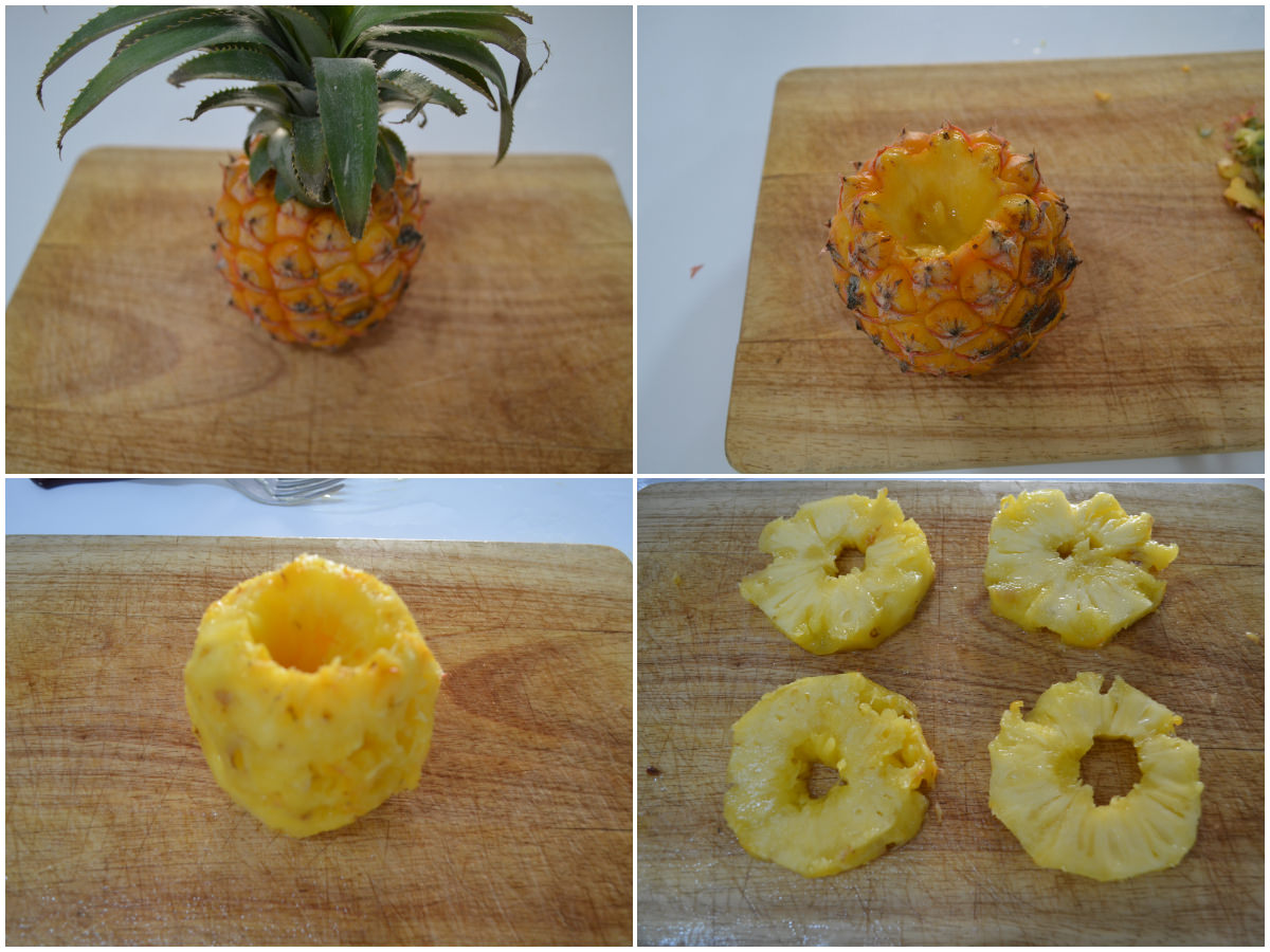 Innanzitutto pulite l'ananas e tagliatelo a fette.