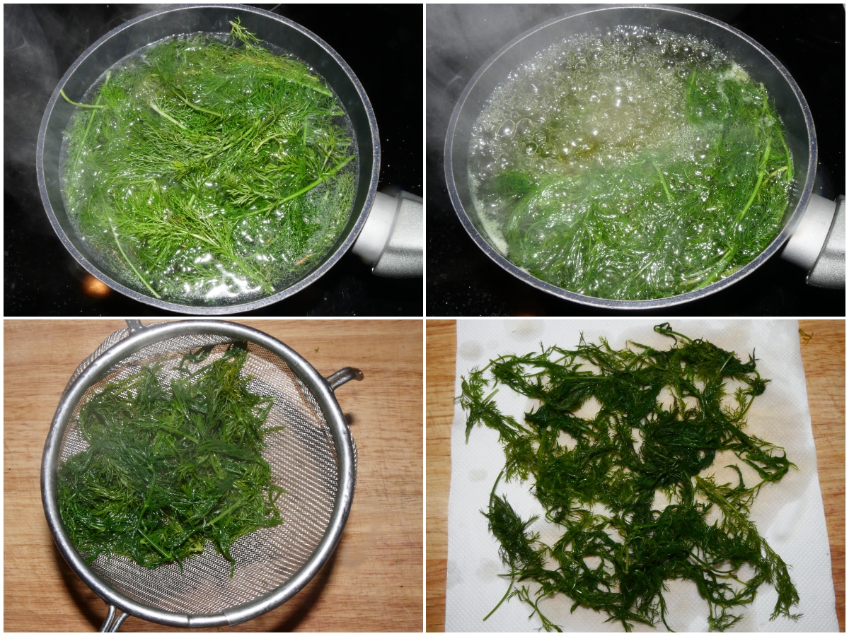 Sbollentateli per 5 minuti in acqua leggermente salata e già in ebollizione, quindi scolateli e poi fateli asciugare su carta da cucina o un canovaccio pulito.