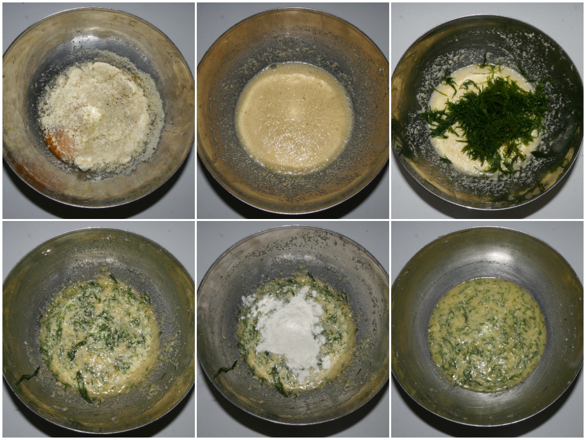 Preparate la pastella: in una ciotola, sbattete le uova con formaggio , sale e pepe, poi incorporate il finocchietto tagliuzzato e infine anche la farina.