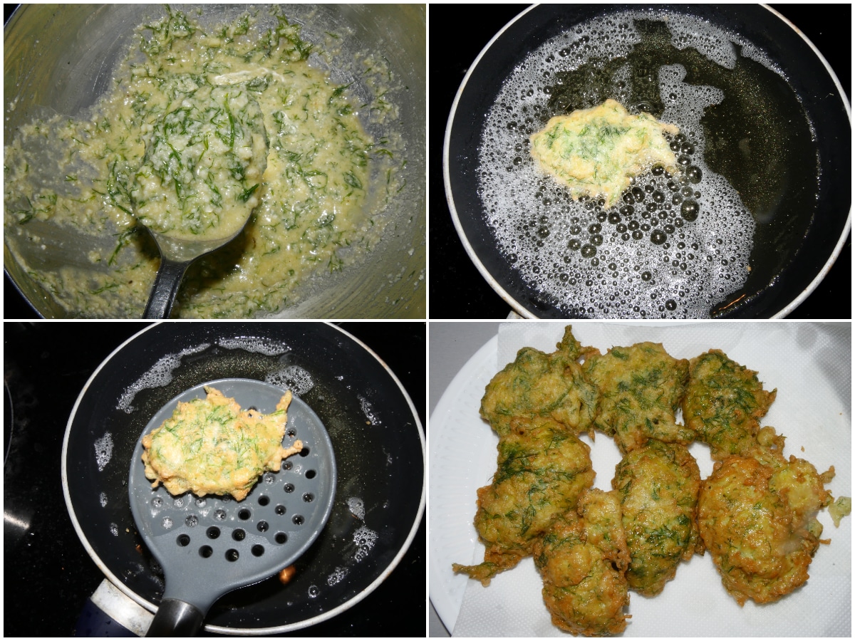 Cuocete il composto a cucchiaiate in olio già caldo, girando a metà cottura per far cuocere e dorare entrambi i lati, quindi scolate con una forchetta e lasciate asciugare su carta da cucina.