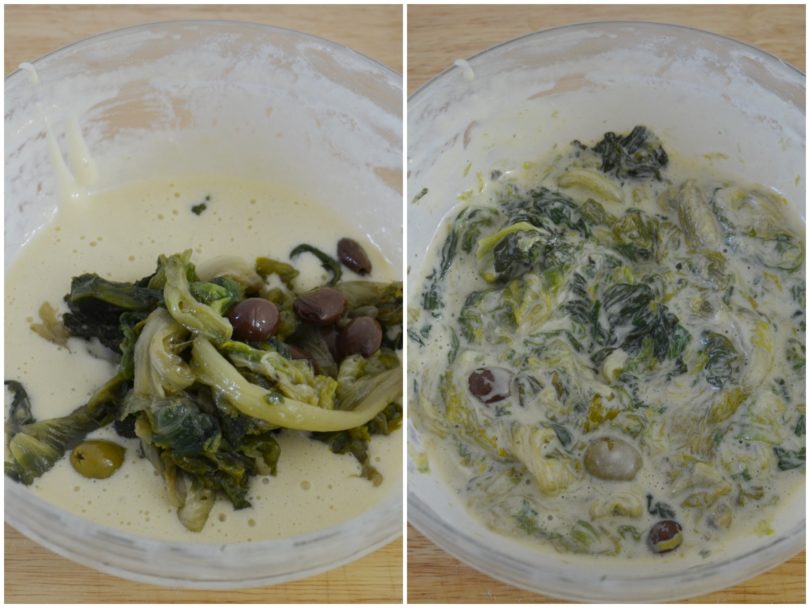 Aggiungete le scarole alla pastella e mescolate delicatamente.