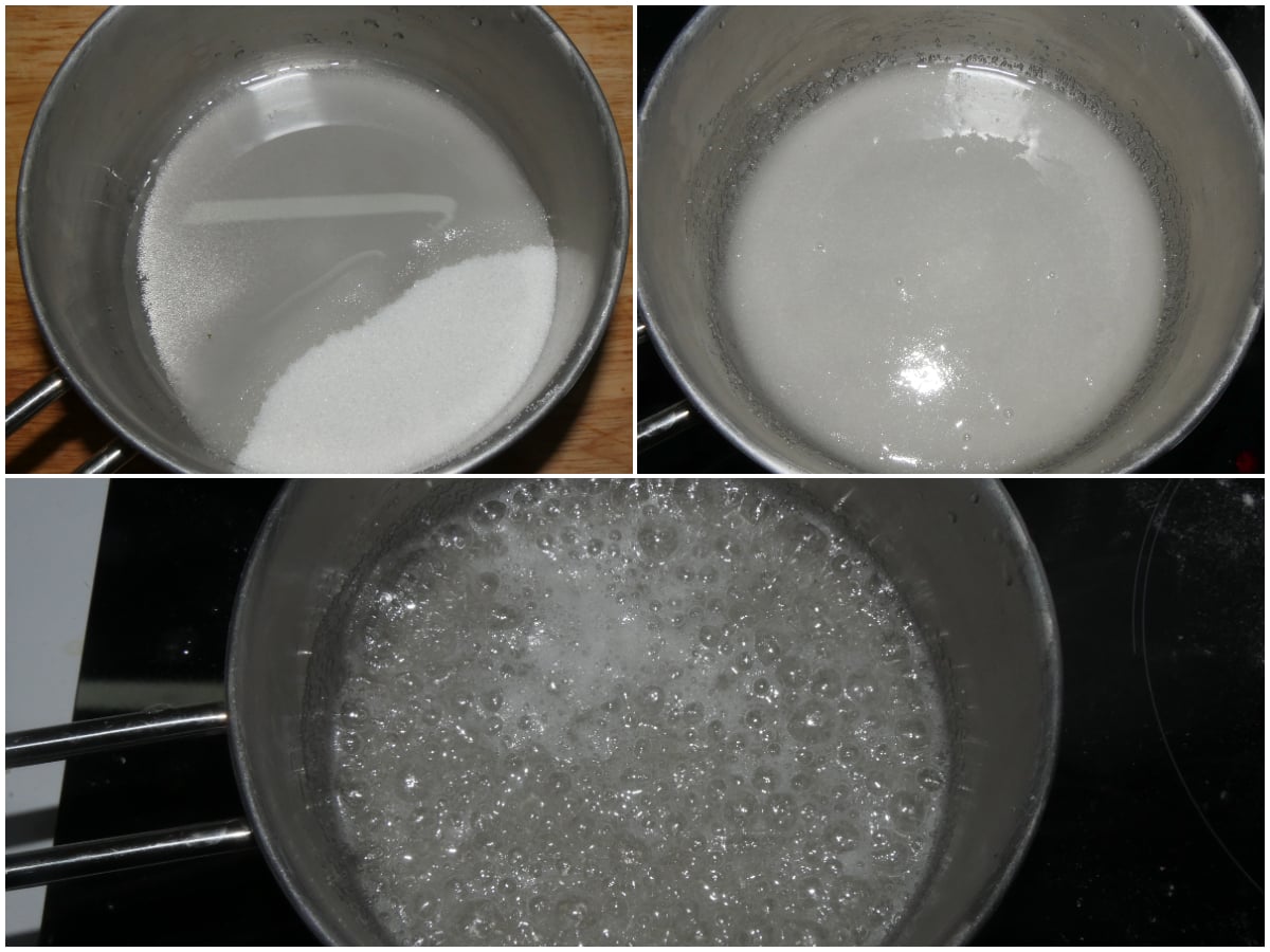 Preparate lo sciroppo portando a piena ebollizione acqua e zucchero in un pentolino e facendolo bollire per 5 minuti.