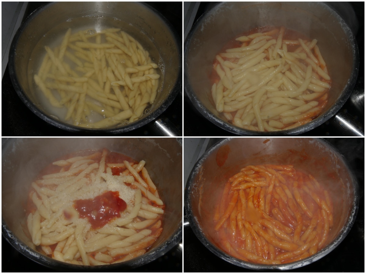 Potete condirli a piacere: qui li vedete con un sugo di pomodoro al basilico e tanto parmigiano.