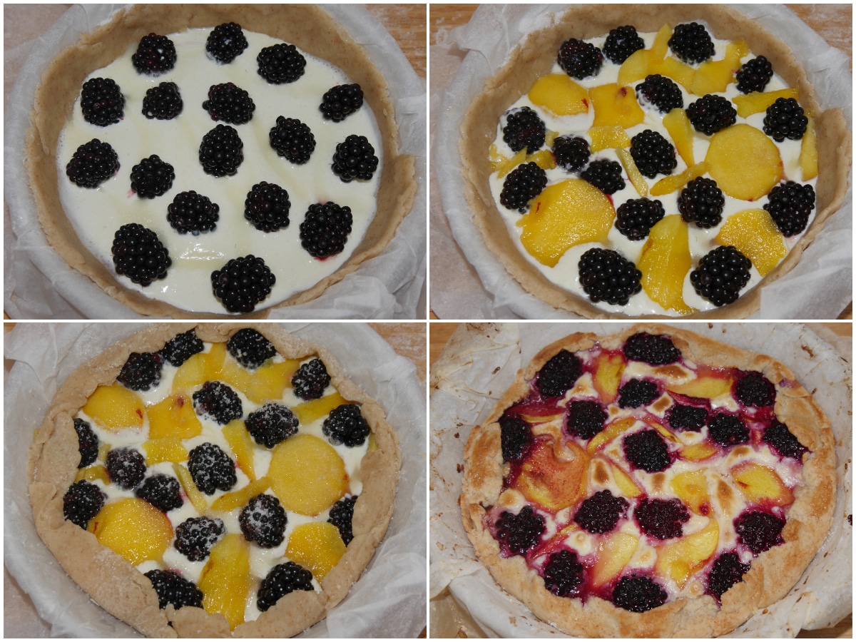 La galette alle more e pesche è una ricetta di Nigella Lawson. Non è la prima volta che provo una delle ricette di Nigella, e devo dire che mi sono sempre piaciute particolarmente. A questo giro ho scelto una ricetta molto semplice, dal gusto un po' rustico grazie alla presenza della farina integrale, ma fresco ed estivo grazie alla frutta (che comunque potete variare a piacimento). Rispetto all'ultima galette ho variato le proporzioni tra farina integrale e farina bianca, in modo da darvi più opzioni diverse tra cui scegliere a seconda del vostro gusto personale. Ad ogni modo vi consiglio di provarla, questa ricetta, perché tra il guscio friabile e il ripieno cremosamente voluttuoso il risultato è decisamente da non perdere ;)